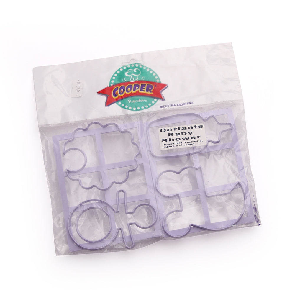 Incluye 4 cortantes: Mamadera, cochecito , chupete y Babero.