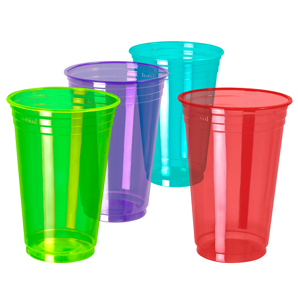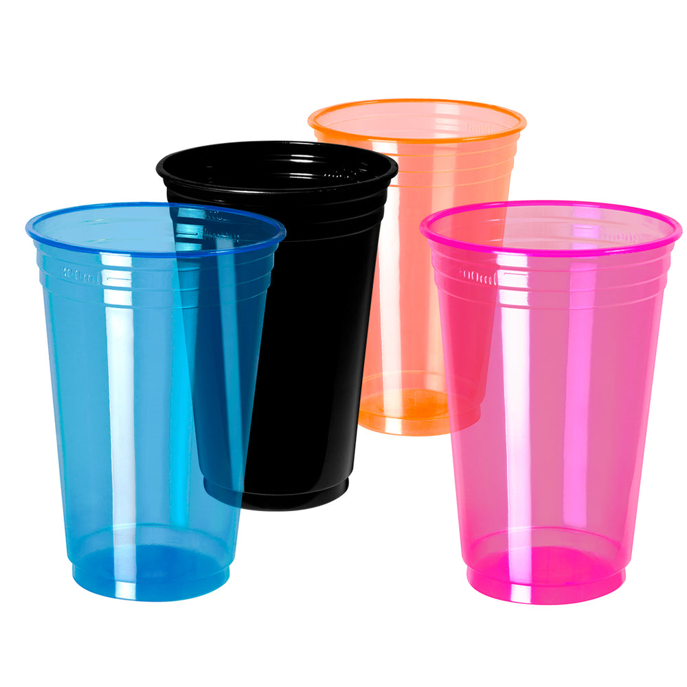 ¡Dale un toque vibrante a tus fiestas con estos vasos neón! Fabricados en polipropileno resistente, son perfectos para todo tipo de eventos.